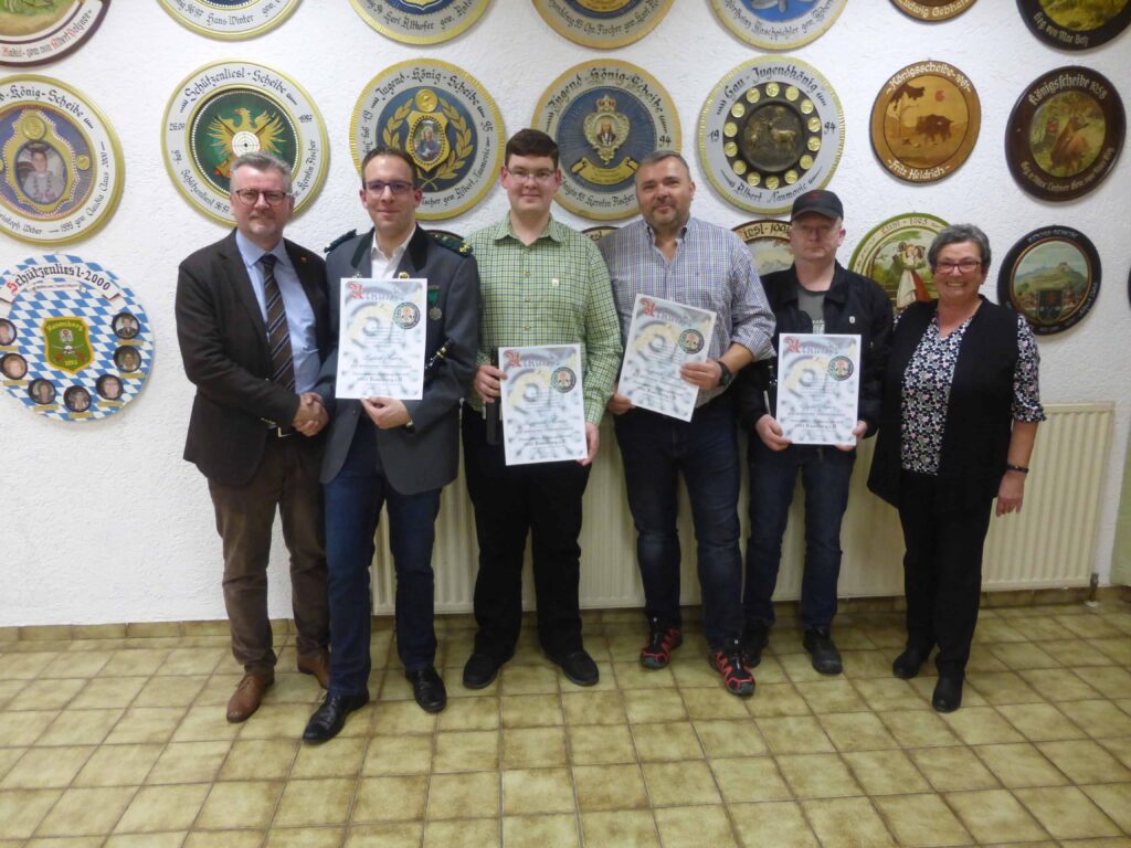 Bevor es zur Preisverteilung ging, nahm Schützenmeister Reinhold Brandl eine Ehrung vor. Als Dank für den außerordentlichen Einsatz bei den Umbauarbeiten für die neuen elektronischen Schießstände verlieh er an Martin Partsch, Markus Rupprecht, Armin Strobel und Werner Trepesch die Vereinsnadel in Silber mit Urkunde. Diese Ehrung wird nur selten vergeben.