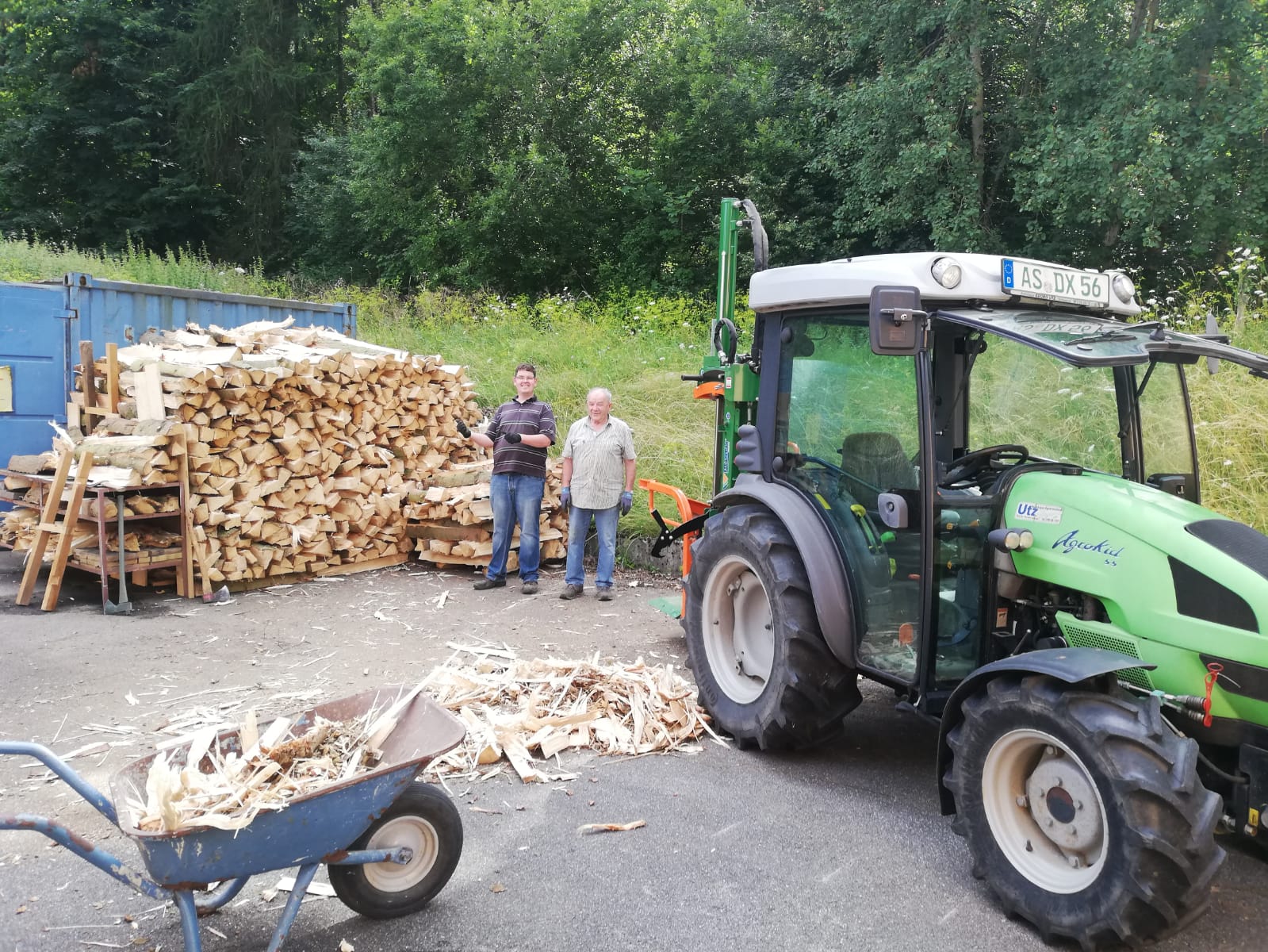 Die Brennholzaction begann schon 2021 als wieder eine größere Menge Holz für Vereinsheim zum Spalten war, wofür Hermann Strobel seinen Spalter uns zur Verfügung stellte. Mit der Hilfe von Strobel Armin und Markus Rupprecht war das Holz schnell gespalten und zum Trocknen gestapelt, anschließend bekamen alle ein großes Helferessen zu Stärkung.