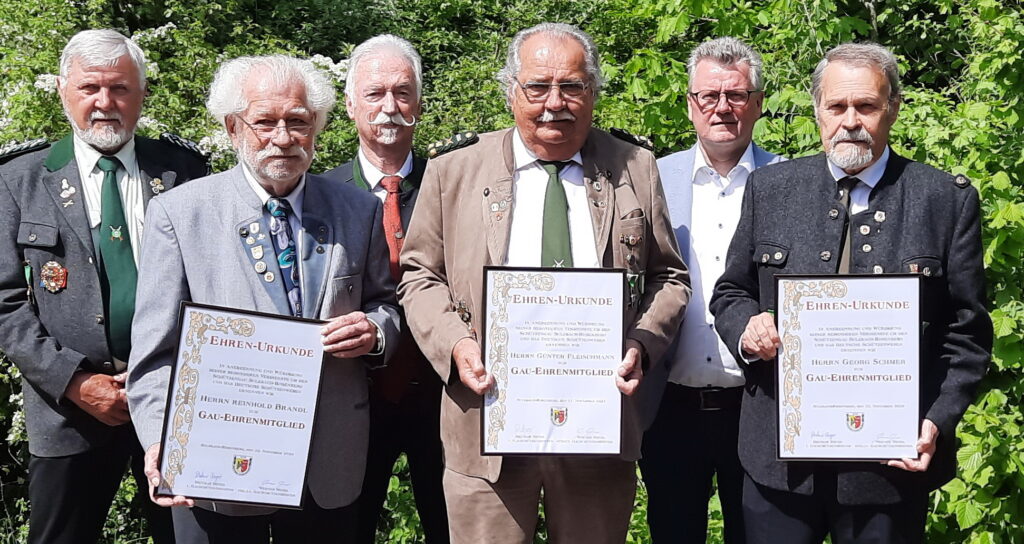 Neue Gauvorstandschaft v.l.n.r.: OSB-Präsident Franz Brunner, Georg Hausmann, Johann Zimmermann, Anita Zirnig, Annette Rauscher, Thomas Borek, Jürgen Weiß, Tanja Hüttner, Günter Fleischmann, Markus Gebhard, Erwin Schötz, Heinz Rathenow, Dietmar Beyer, Christian Beyer, Wolfgang Moll, Helmut Döbereiner und Werner WendlFür 70-jährige Mitgliedschaft im Verein, OSB und DSB wurde Ehrenmitglied Hans Roth von der Zimmerstutzen- Gesellschaft 1893 Rosenberg und vom Gau Sulzbach-Rosenberg besonders geehrt.Neue Gauehrenmitglieder v.l.n.r.: Gauschützenmeister Dietmar Beyer, Reinhold Brandl, OSB-Präsident Franz Brunner, Günter Fleischmann, 1. Bgm. Michael Göth, Georg Schmer
