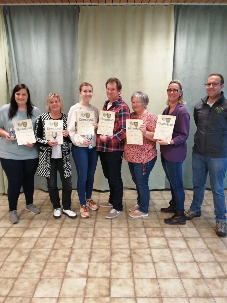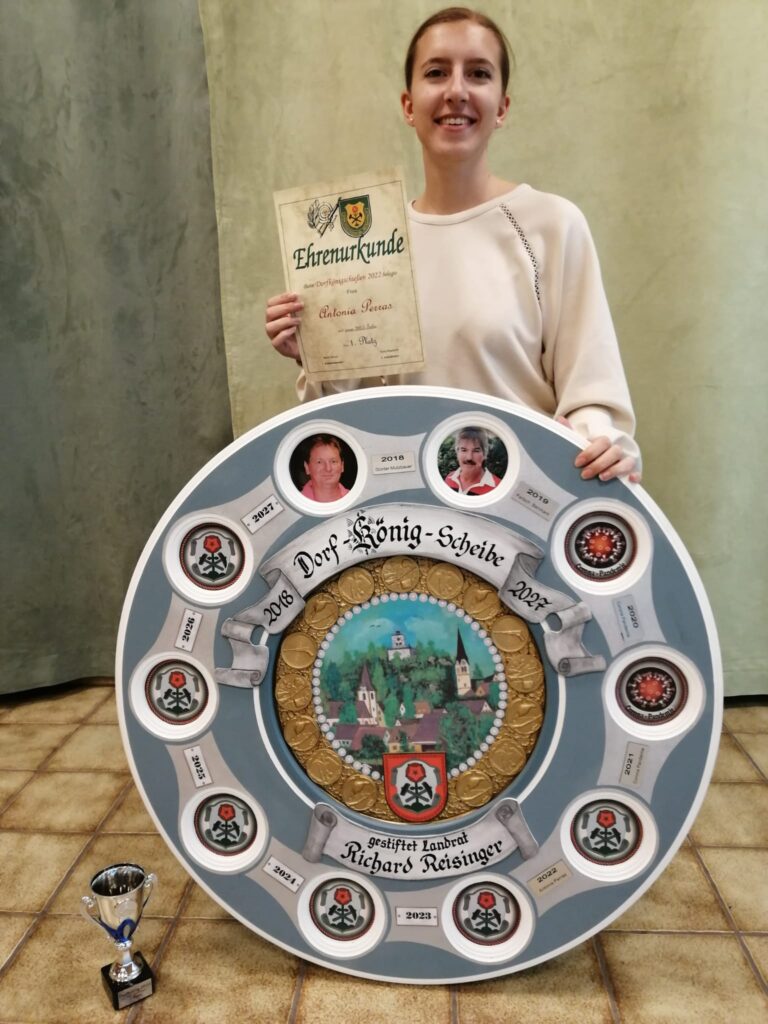 Mit 93 Ringen wurde Günter Mutzbauer Dorfmeister. Es folgte mit 90 Ringen Rebecca Kohl. Den dritten Platz erreichte Helga Mutzbauer mit 84 Ringen. In der Königswertung schaffte es Antonia Perras mit einem 260-Teiler auf den ersten Platz und wurde somit Dorfkönigin. Ihre Stellvertreterin ist Manuele Ottmann mit einem 341-Teiler. Platz drei sicherte sich mit einem 385-Teiler Yvonne Baumer. Alle Sieger bekamen Urkunden und Pokale. Die Dorfkönigin wird zudem mit einem Bild auf der von Landrat Richard Reisinger gestifteten Dorfkönigsscheibe verewigt. Die Tischgesellschaft Edelweiß bekam den Preis für die Meistbeteiligung.